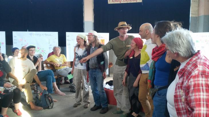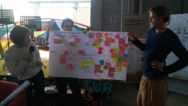 In 10 Themengruppen wurden Aspekte neuer Ökonomie, Online Kommunikation, Medien, Währungen oder dem guten Leben für Alle heftig diskutiert. Besonders fruchtbar war die Vernetzung mit Plattformen des Wandels, wie "Human Connection", "Karte von morgen" oder "wechange", >> hier sind unsere Notizen.