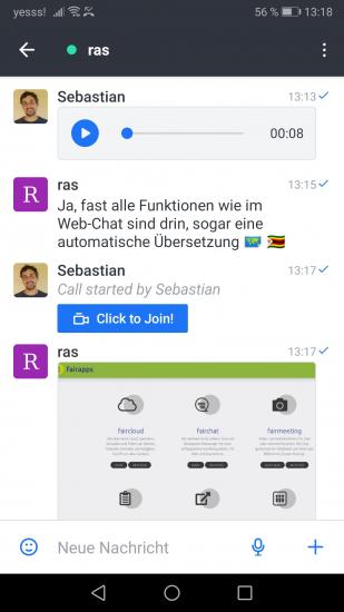 The new fairchat app has a totally new framework, a new design and many new functions. Based on the React Native App developed by Rocket.Chat, the new mobile app offers several improvements and additional features. In addition, the app can be connected to several Rocket.Chat servers at the same time.