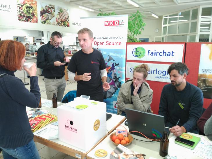 Auch heuer war die fairkom wieder beim alljährlich stattfindenden LinuxDay in Dornbirn als Förderer sowie mit einem eigenen Stand mit dabei. Neben unseren Cloud-Services, waren vor allem die neuesten fairkom Produkte, fairchat und die alternatve single-sign-on Lösung, fairlogin im Gespräch. Großes Interesse gab es auch wieder für die erste demokratisch verwaltete Krypto-Währung FairCoin.